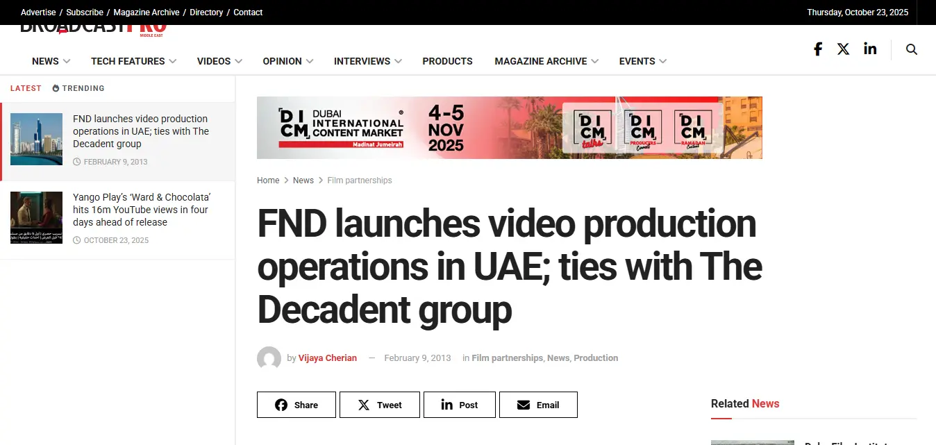FND is a high quality video production house. We make a awesome branded videos. It is the analogical of film making, but the images are digitally recorded instead of film stock.